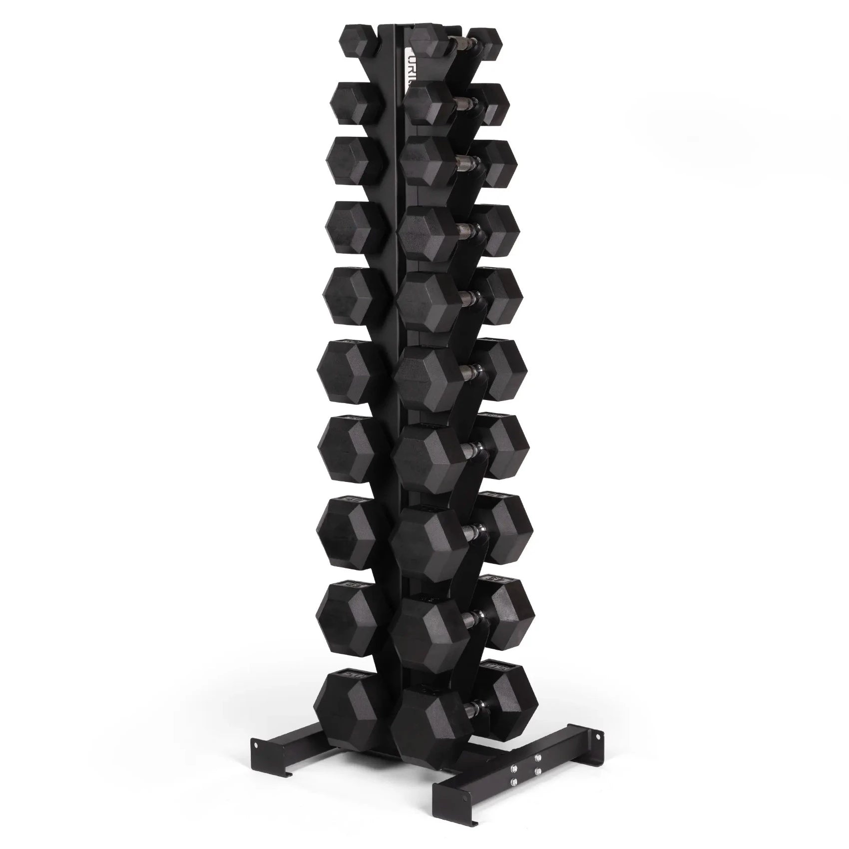 Presenting the Orion 10-Pair Vertical Dumbbell Storage Rack. This smart storage solution ensures your dumbbells are neatly organized and within reach. Designed for durability and a modern aesthetic. it's an ideal fit for your home gym.