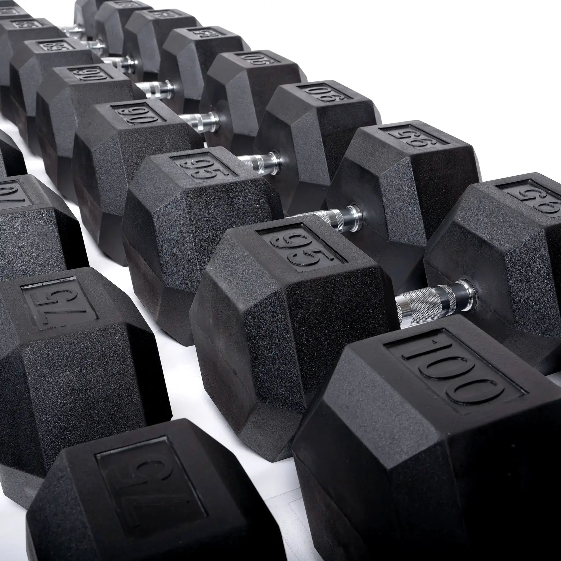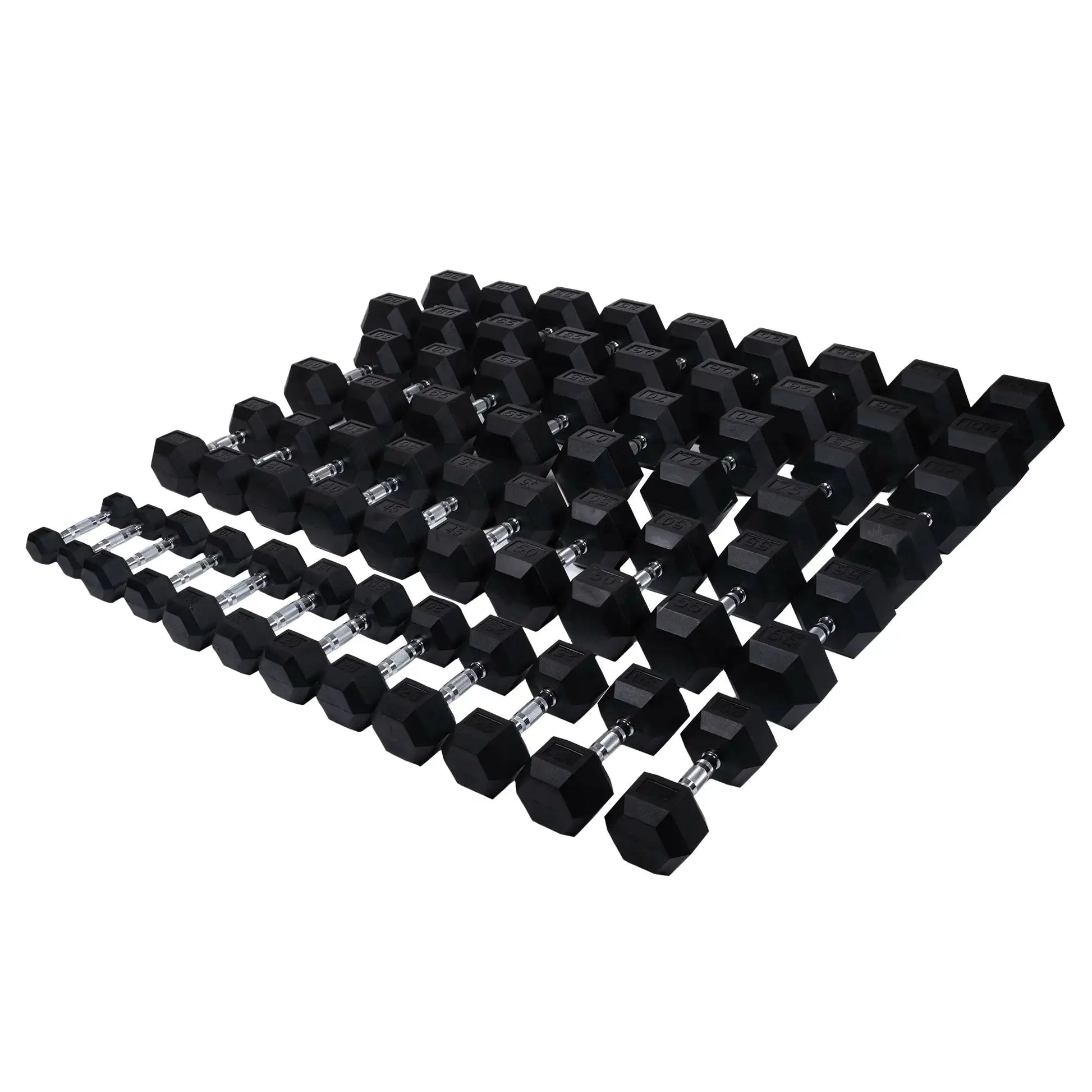 Rubber Hex Dumbbell Set + Rack and Bench | 5-50lb