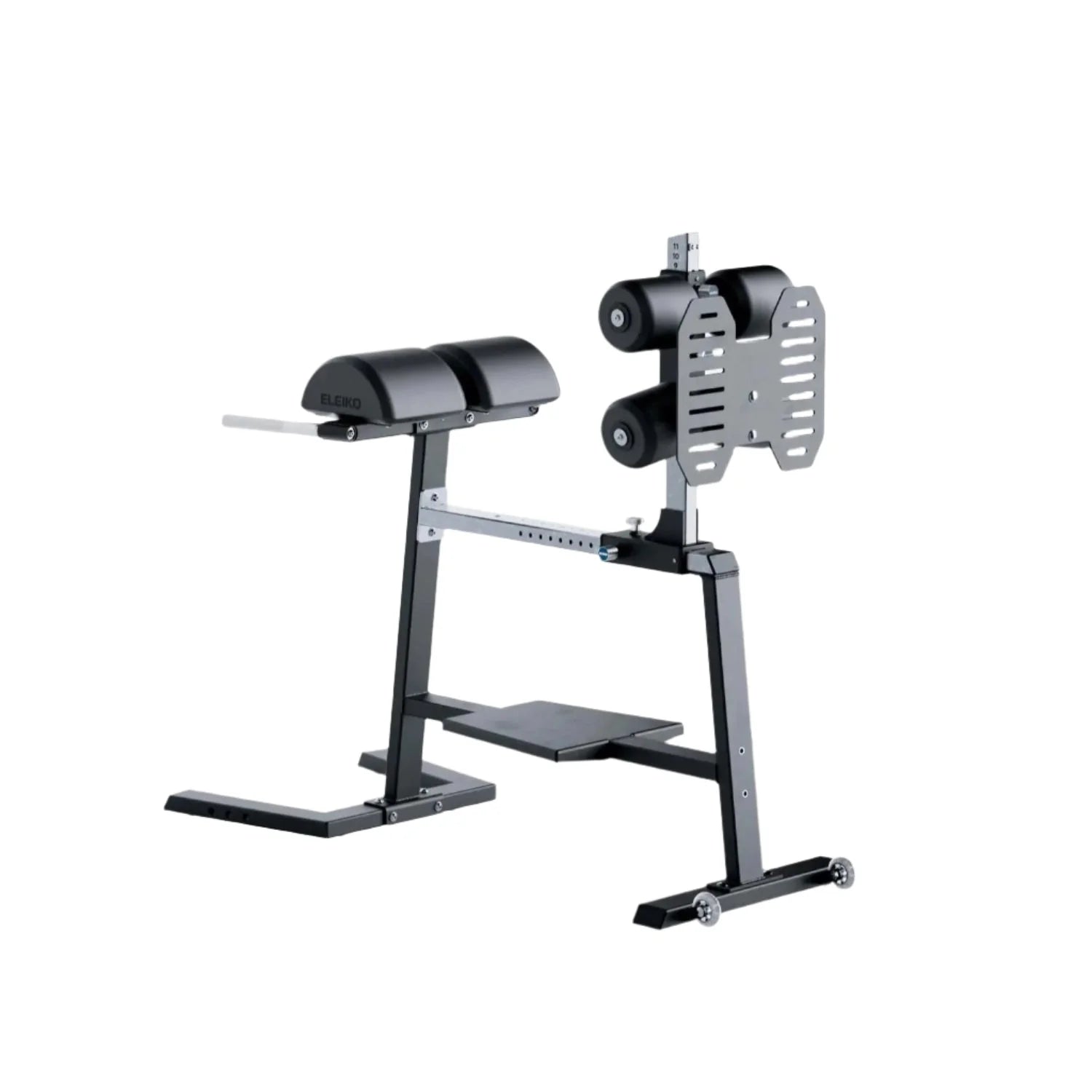 Built from high-grade steel with a sturdy base design. the Eleiko GHD is made for demanding and varied training environments delivering long-lasting performance and precision adjustments for the ultimate glute. hamstring and midline training. A range of adjustments allows users to get the perfect fit. Knurled handles on the front ease user positioning. use and exit. Knurled knobs are comfortable and secure to grasp. and simple to operate. Non-marking rubber feet protect floors. Wheels allow for easy portability. and bolt down holes are available for added stability.