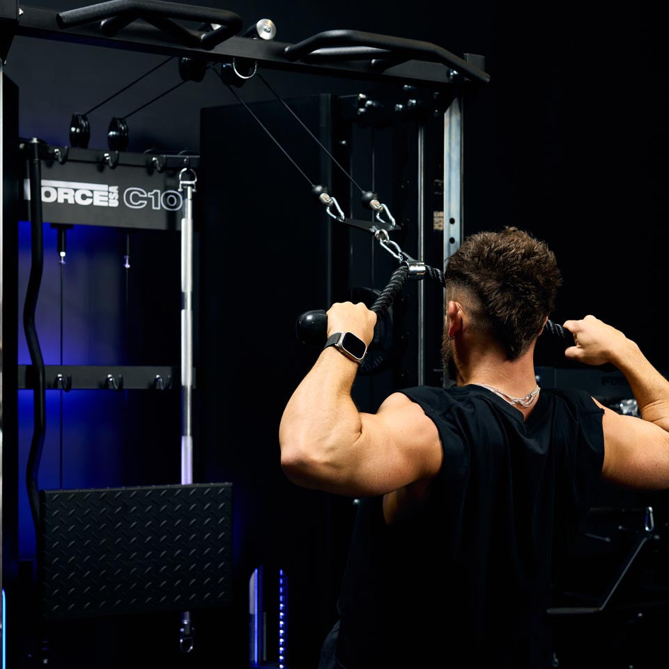 The patent pending Force USA C10 All-In-One Trainer is the first of its kind with a centre cable system. six cable connections. and dual 200-degree adjustable upright pulleys that triple your resistance training possibilities.