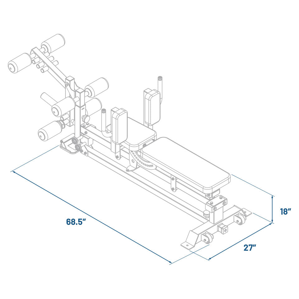 The Force USA Sliding Bench is a 5-in-1 cable-cable-connected compact powerhouse designed exclusively for the Force USA C10 and C20 All-In-One Trainer. Combines an adjustable bench. sliding leg press. hack squat. preacher curl. leg curl. and leg extension that connect to the dual weight stacks on the C10 and C20—no weight plates required!