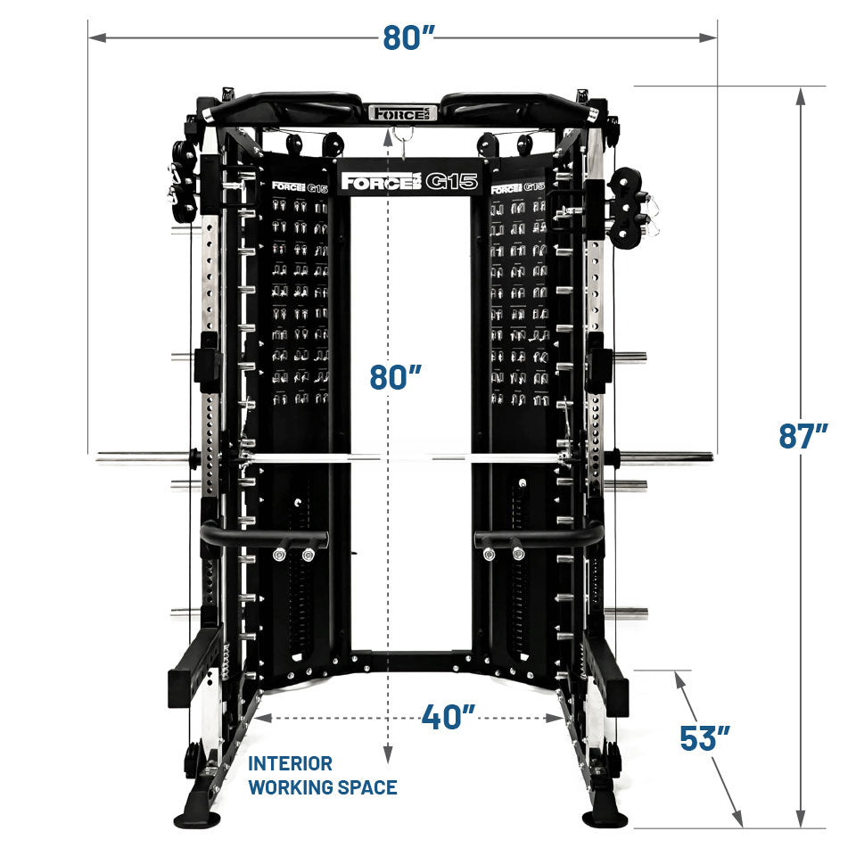 The G15 provides a full-body workout without filling a room with individual machines. Save time. money. and space with a complete Force USA G15 Pro All-In-One Gym!