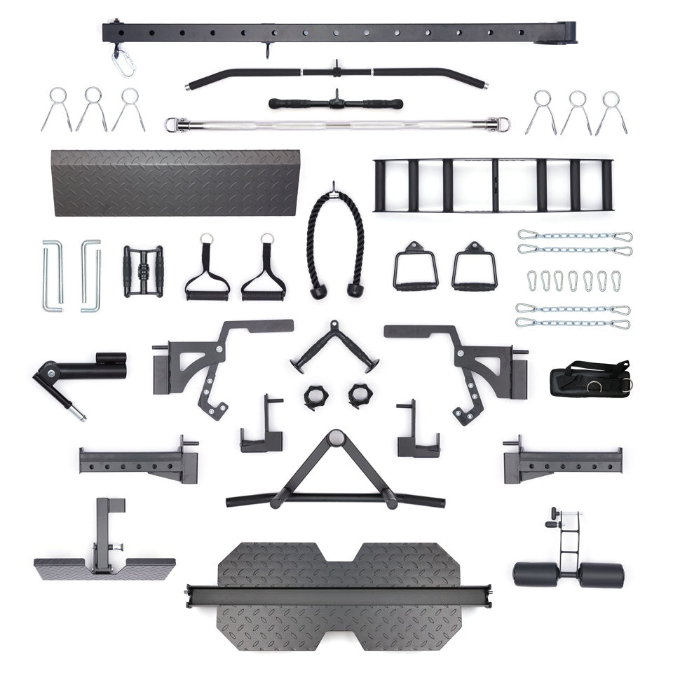 Level up your Force USA G20 All-In-One Trainer with the Lat Row Station Upgrade. Combines a low row. lat pulldown. and dip station into one compact footprint!