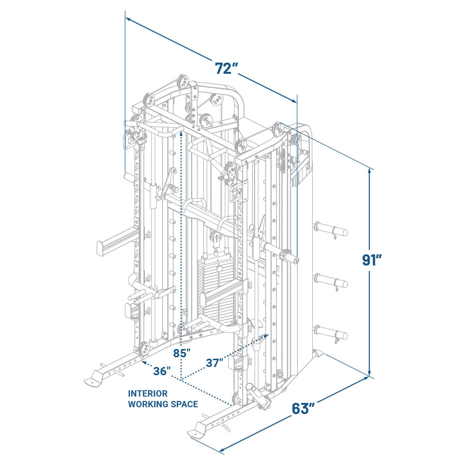 Perform full-body workouts or target specific muscle groups with ease. Switch from split training. circuit training. WOD variations. and supersets to endurance training in seconds. The G6 even includes built-in storage for an Olympic and Standard barbell. weight plates. and cable attachments. keeping your training space tidy. organized. and free of trip hazards.