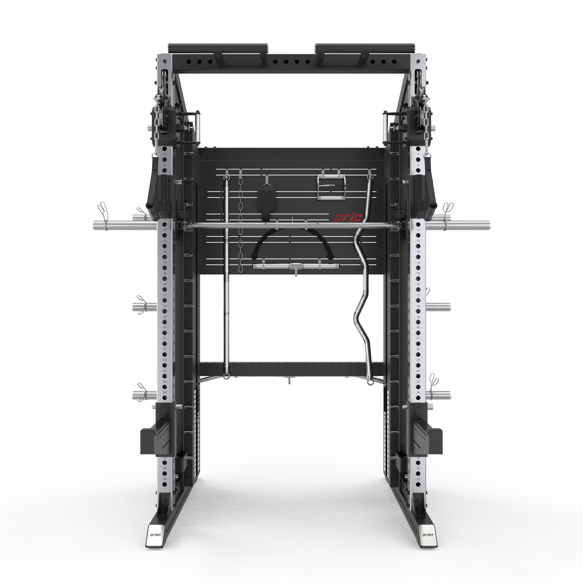 - Functional Trainer + Smith Machine + Half Rack – A full functional trainer plus a built-in Smith and half rack. giving you cables. isolation work. and guided barbell movements in one system.