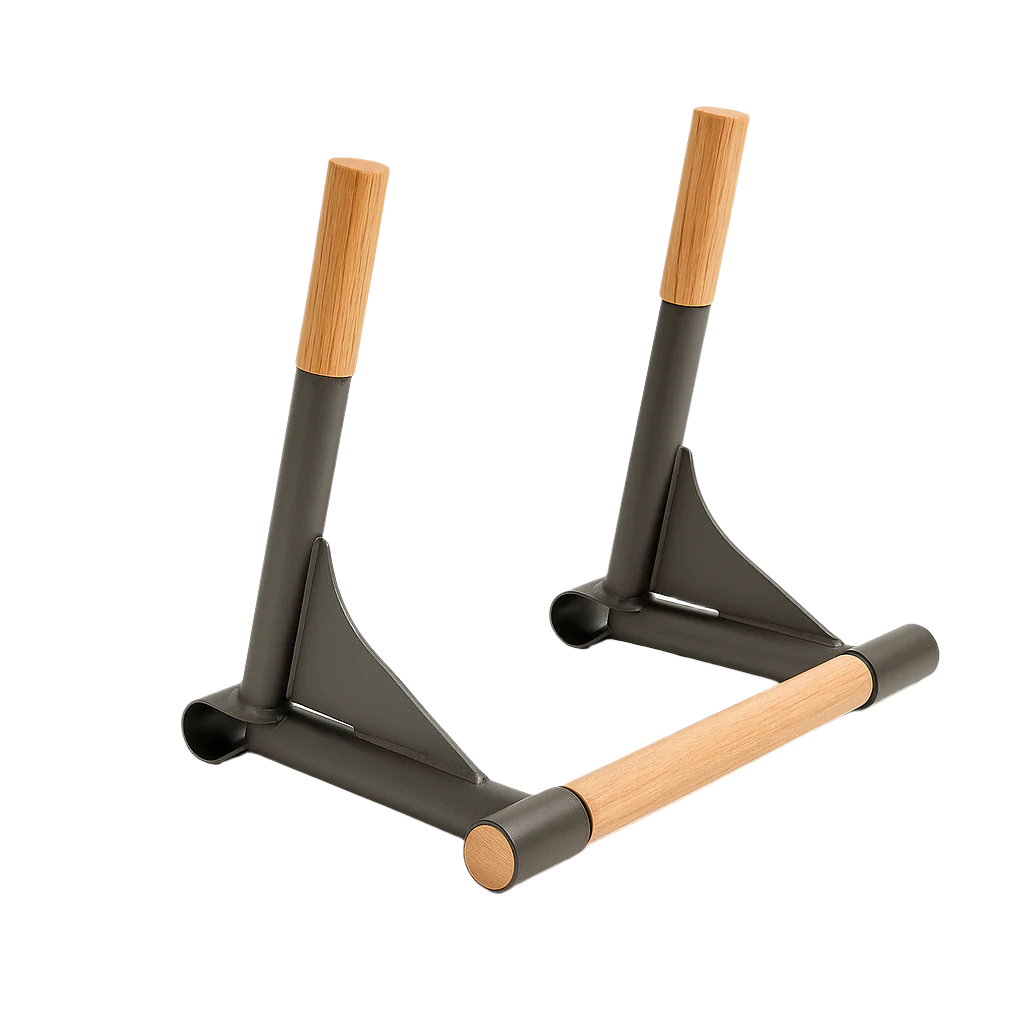 The Multi-Adapter is made of high-quality wood and solid metal. ensuring quality and precision workmanship. Strong hold and guaranteed stability. The natural wood grain provides a comfortable. safe grip. Sophisticated. eye-catching design - this combination of wood and metal will fit any interior environment. More than just an attractive design: Exercise on the Multi-Adapter for a whole range of further. specific exercises targeting all muscle groups.