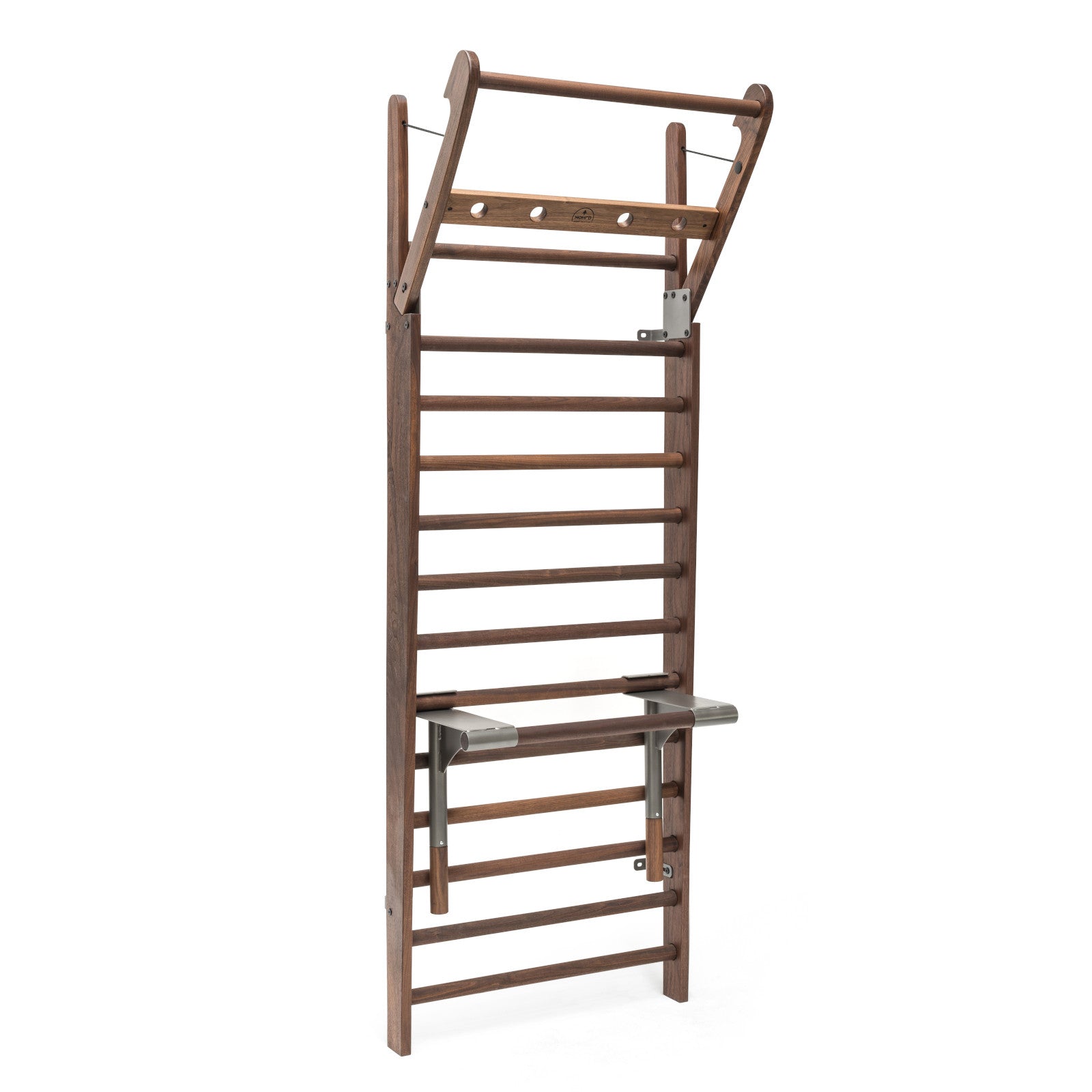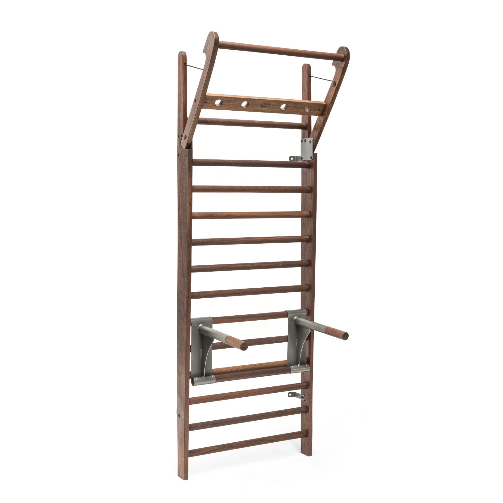 The NOHRD Multi-Adapter is a single piece accessory with two functions. The Multi-Adapter is an ideal accessory. developed from a simple. basic idea and providing a whole range of new exercises. Hook into any rung for use the handlebars for triceps dips or turn over for the horizontal bar to fold out. Both options will let you add specific exercises to complete your workout.