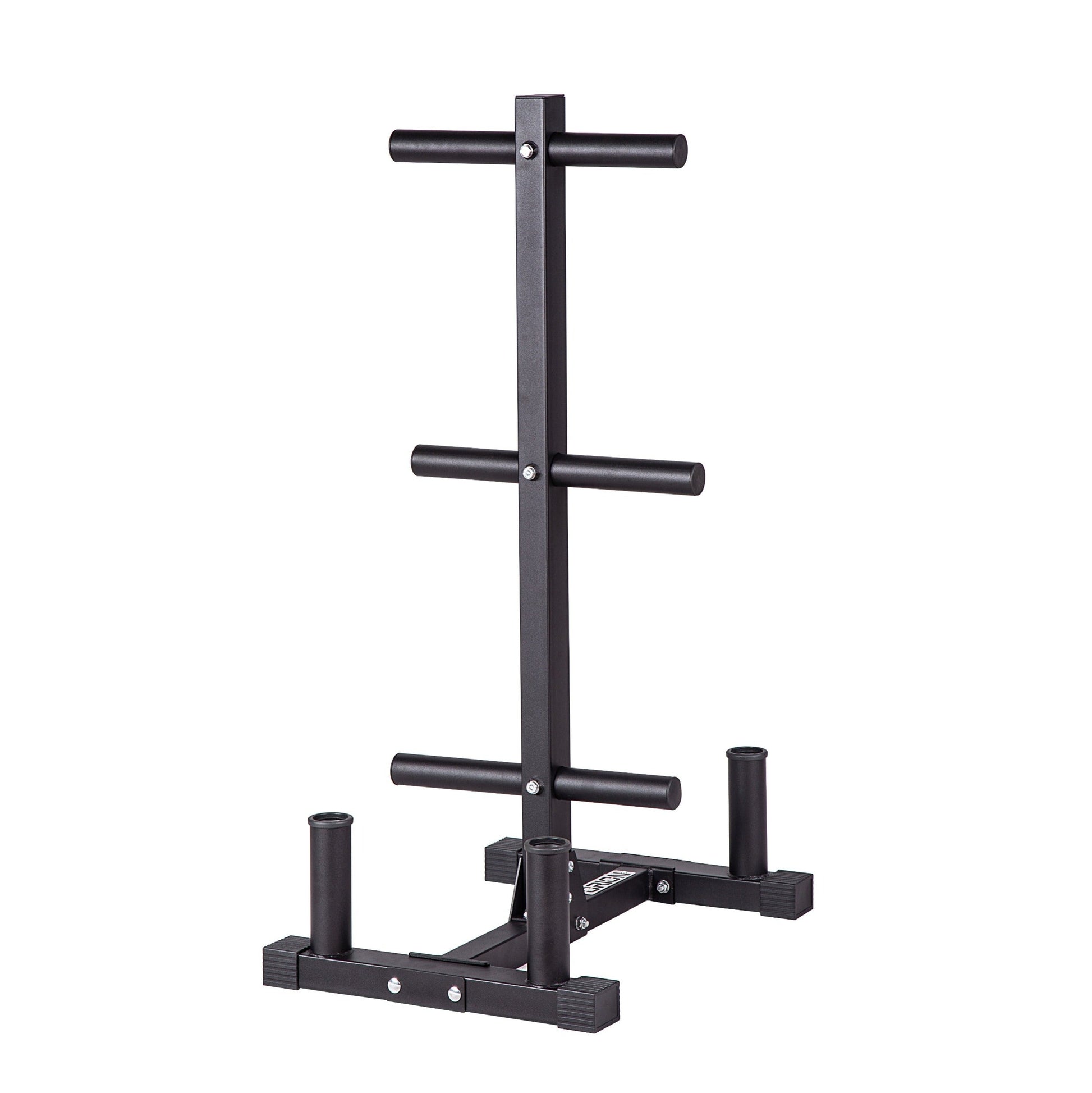 The Orion Olympic Weight Plate Tree keeps 2” Olympic weights up off the floor. preventing tripping hazards and allowing for easy plate changes. It features six plate storage pegs that can accommodate our full size Bumper Plates. Olympic Rubber Grip Plates or Olympic Cast-Iron Plates. This rack also features four Olympic barbell holders for storage. The design of this plate tree helps to distribute the weight evenly as well as keep the rack from tipping over when loaded.