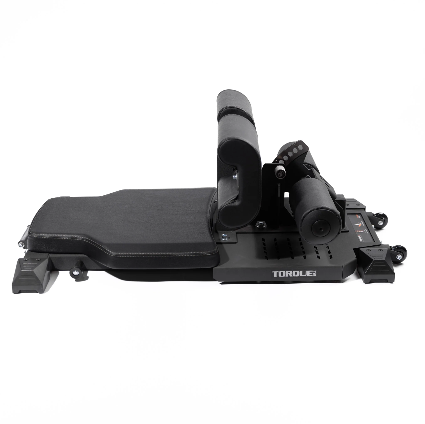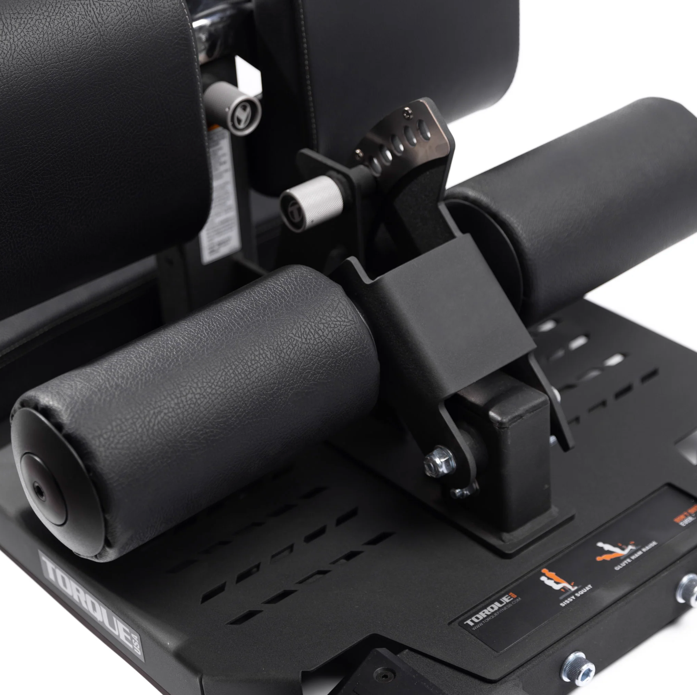 The Torque Sissy Squat & Floor Glute Ham Developer is an exercise machine designed to strengthen the legs and glutes through the dual functions of sissy squats and floor glute ham raises. The safety pad for the sissy squat doubles as a platform for floor glute ham exercises. Its calf pad is vertically adjustable to 5 different positions along with the foot roller pad featuring 7 adjustable positions to suit any of your exercise needs. The machine's knurled anodized aluminum spring pin knobs. durable high-density molded pads. and chrome-plated tubing and plates allow for smooth adjustments. For added convenience. the machine comes with two resistance band anchor points and optional floor anchoring locations. It is also portable and easy to move with its knurled handle and wheels. It's time to take leg day to the next level.