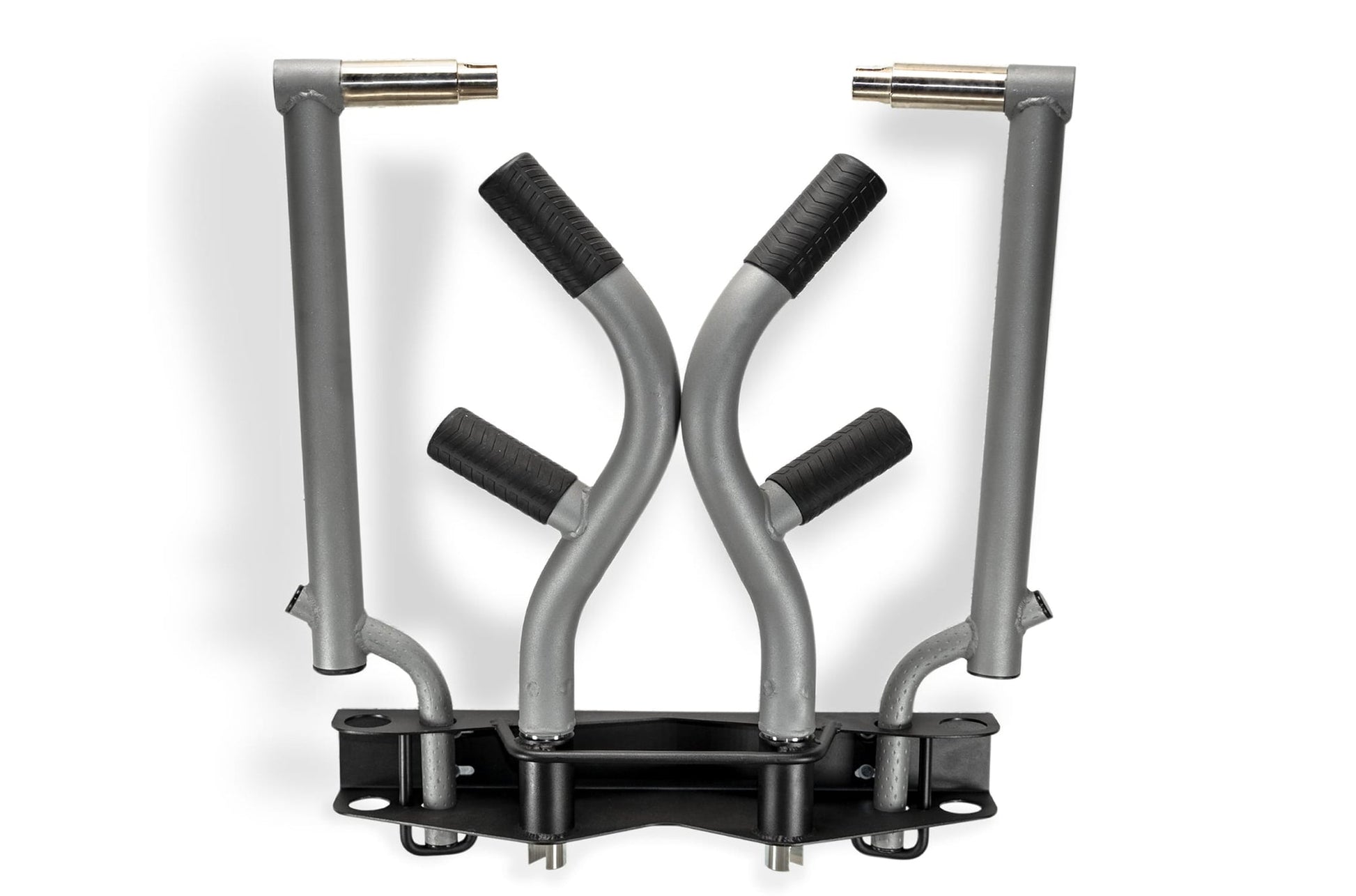 Store your TANK™ handles when not in use with the MX Wall-Mounted Handle Storage. Fits two pairs of Performance Handles and one pair of Wheelbarrow Handles. This system also pairs well with battle ropes. dual handled resistance bands. and other strap accessories. Includes 4 (3/8" x 2-1/2") lag bolts and washers for attaching to wood studs. Additional hardware is required for mounting to other substrates.